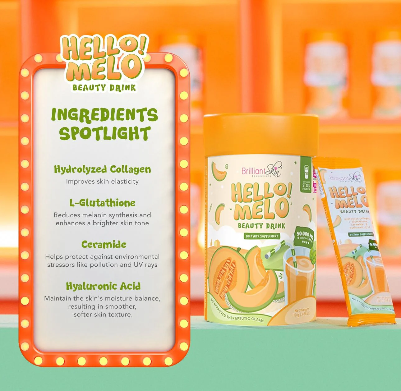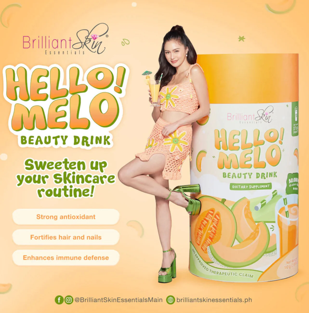 Introducing Brilliant Skin Hello! Melo Beauty Drink, this refreshing drink combines a harmonious blend of potent active ingredients.
