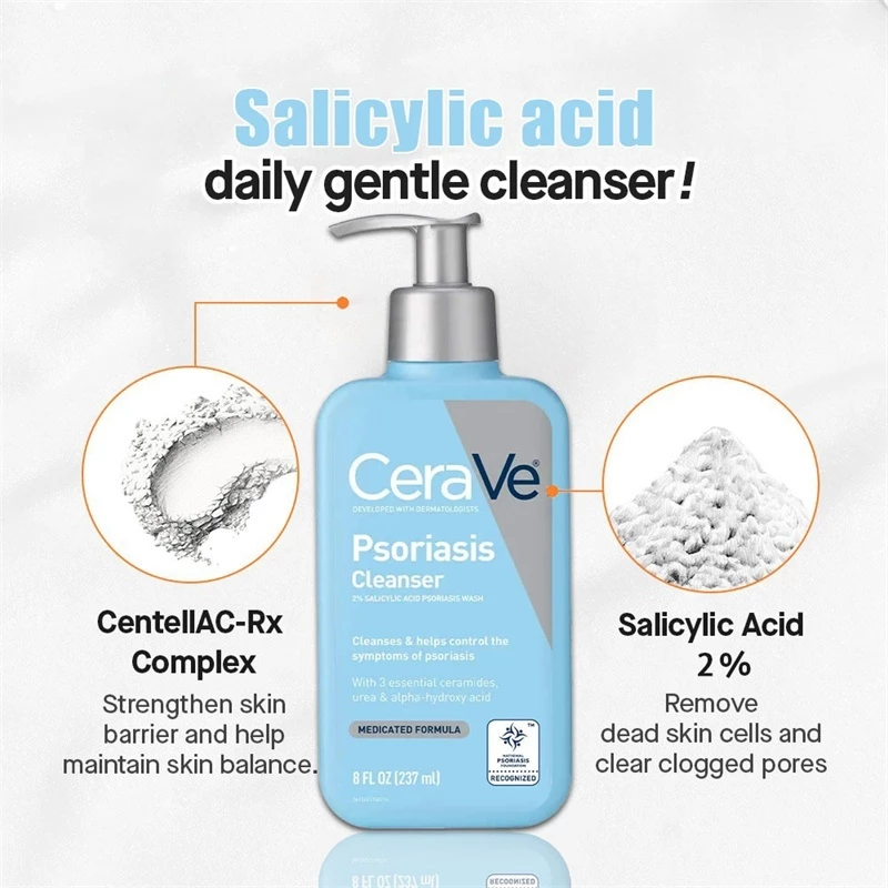 With 2% salicylic acid to help relieve irritated skin, lactic acid for mild exfoliation, three essential ceramides to promote skin-barrier function, moisturizing glycerin and urea, plus soothing niacinamide, CeraVe Psoriasis Cleanser gently cleanses psoriasis-prone skin, removes scales and helps the skin retain moisture. Our dermatologist-developed, allergy tested psoriasis body wash, coupled with CeraVe Psoriasis Moisturizing Cream, helps clear visible symptoms of psoriasis and helps prevent them from coming back.