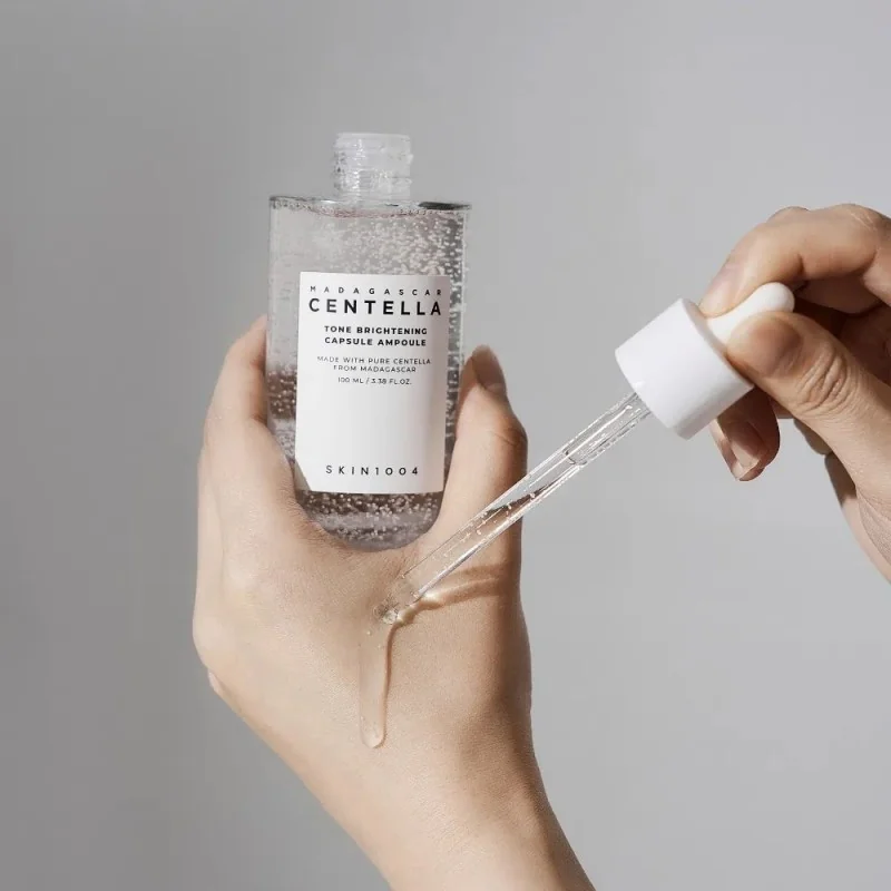 The SKIN1004 Madagascar Centella Tone Brightening Capsule Ampoule is a facial serum enriched with Centella Asiatica extract, known for its soothing and anti-inflammatory properties. This ampoule effectively brightens dark spots thanks to the inclusion of niacinamide and tranexamic acid. Probiotics strengthen the skin’s microbiome and enhance its resilience to external factors, while arginine provides hydration. Recommended for dry, dull, uneven-toned, and sensitive skin, this product is natural and cruelty-free.